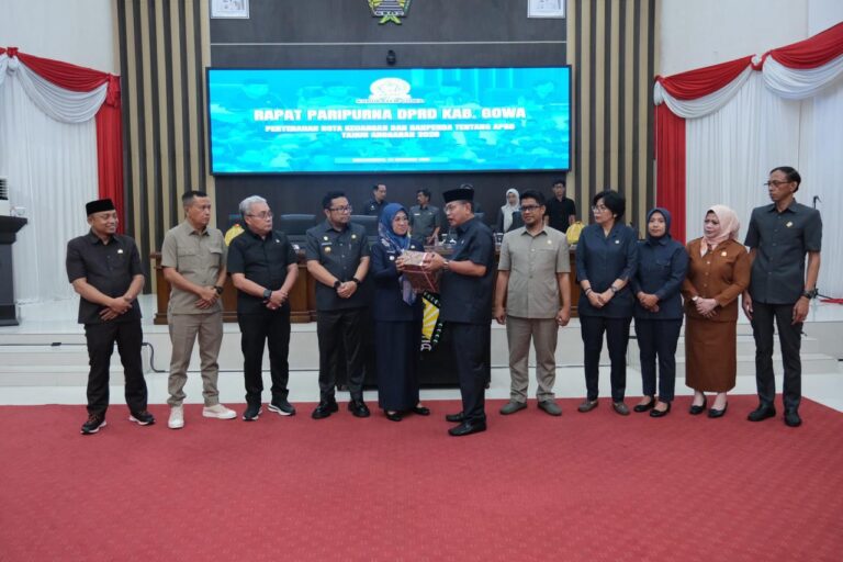 Retorika.co.id, Gowa – Pemerintah Kabupaten (Pemkab) Gowa menyerahkan Nota Keuangan dan Ranperda APBD Tahun Anggaran 2026 kepada DPRD Kabupaten Gowa di Ruang Rapat Paripurna Kantor DPRD Kabupaten Gowa, Senin 24/11/2025.