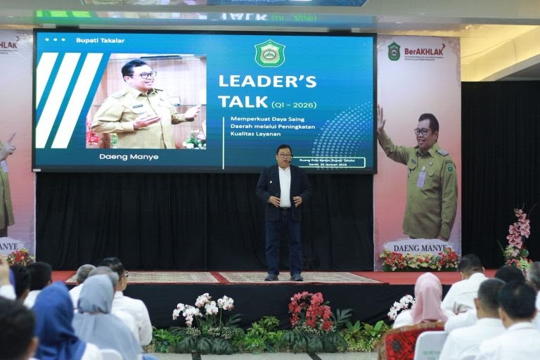 Hal itu disampaikan Bupati Takalar Ir.H.Mohammad Firdaus Daeng Manye,.MM dalam kegiatan Leader Talk yang digelar di Ruang Pola Kantor Bupati Takalar, Senin 26/1/2026.
