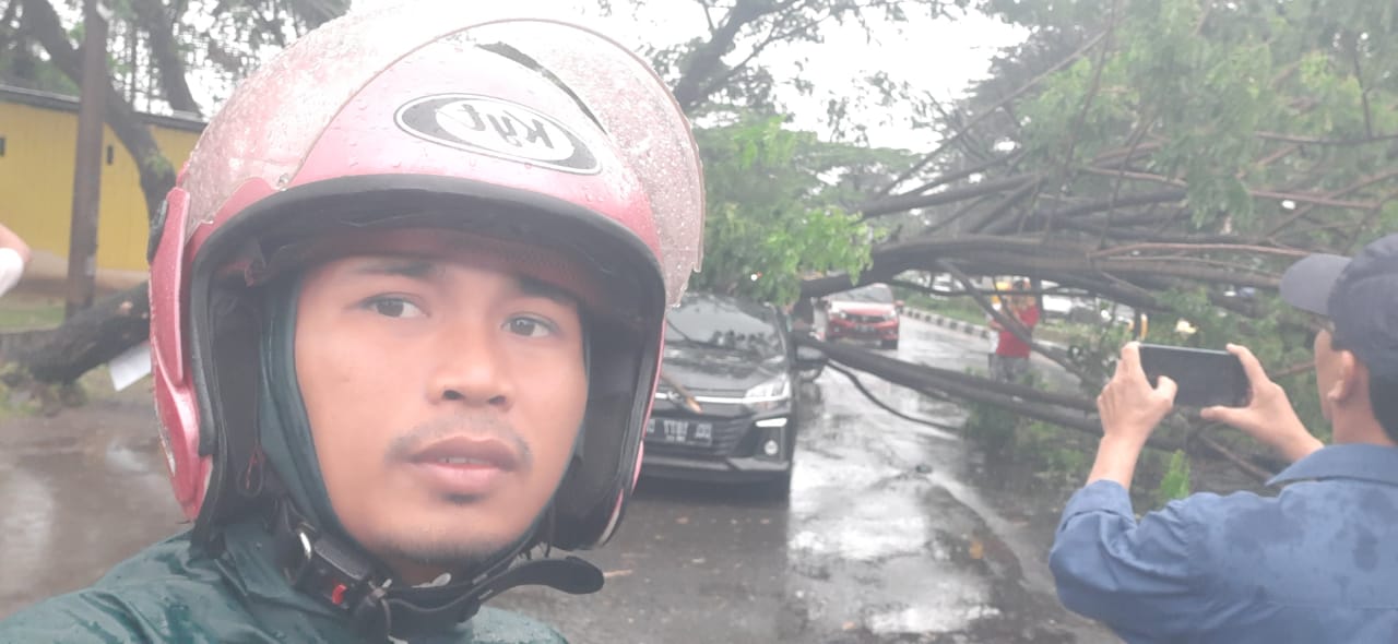 “Pohon tumbang sekitar Pukul 01:39 WIB dan di tangani Unit Dishut Bagian PKP” ujar Irwan Kabid PKP..